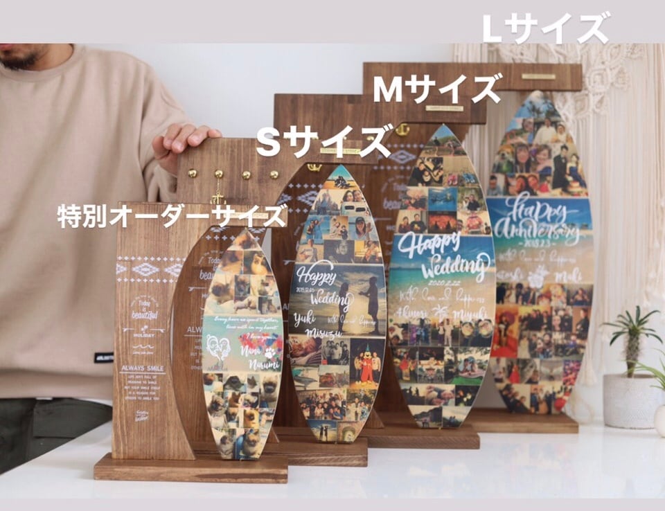 surf boardタイプ のフォトボードMサイズとスタンドのセットになります